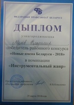 29 марта учитель нашей школы Мулев Владимир Михайлович принимал участие в районном конкурсе "Новые имена Беларуси - 2018"и победил в номинации "Инструментальный жанр".
